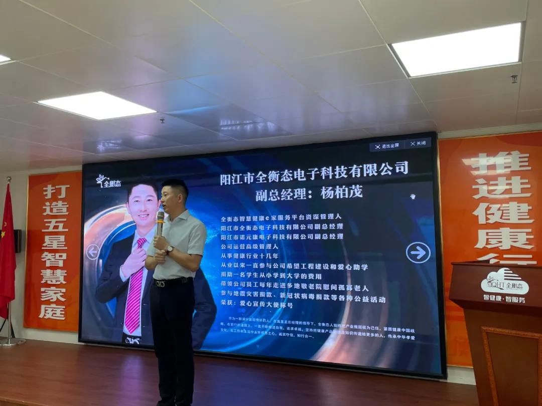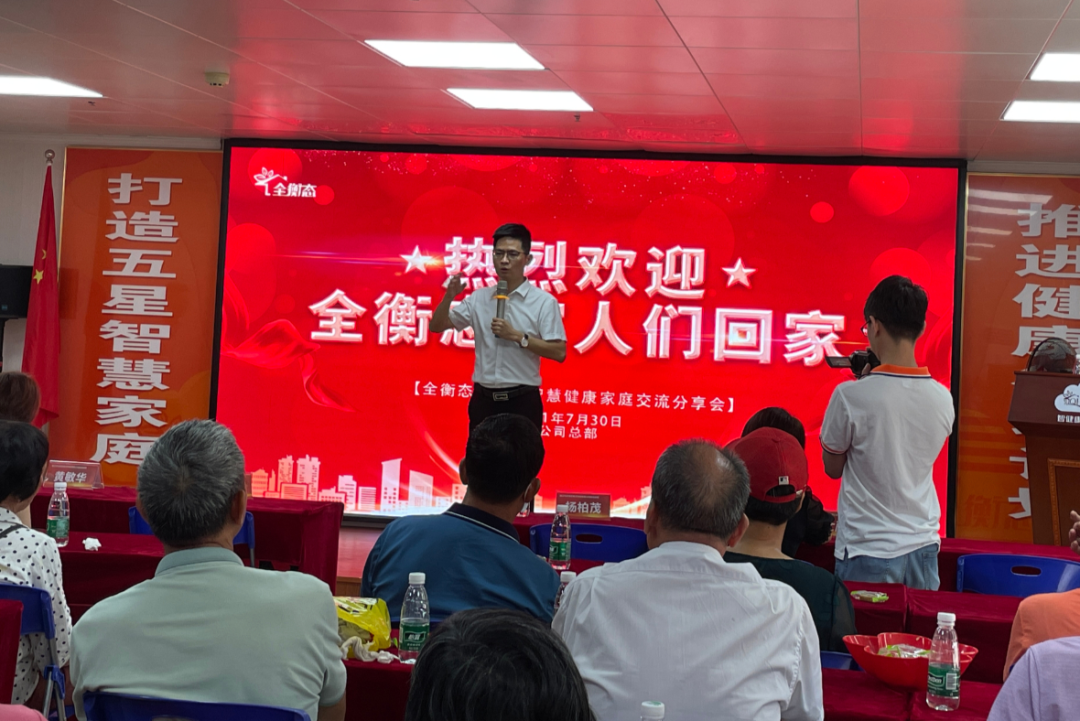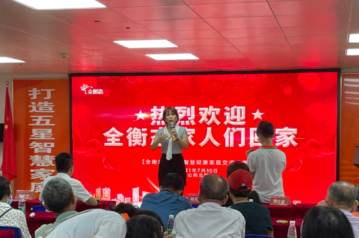 参观完公司后,工作人员带领叔叔阿姨们到达公司会议室,随着主持人激情澎湃的开场白,拉开了本次《热烈欢迎九游会J9官网家人们回家•九游会J9官网五星级智慧健康家庭交流分享会》的序幕,并对智慧健康e家阳江体验代表们的到来表示热烈欢迎!