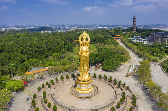 而在莲花山中,还有一座望海观音金像,高达40.88米,以120吨青铜铸成,外贴180两黄金,是目前世界上最高的露天观音像,是饮誉中外的艺术瑰宝。