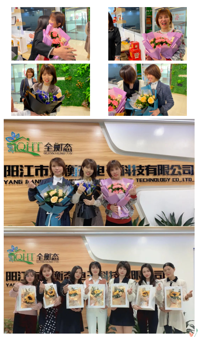 今天,女神节来临,九游会J9官网也不忘给公司总部辛勤工作的女神们送上鲜花与祝福,一大早在开工之前,提前订好的鲜花就整齐的摆放在工位上等女神们一一到来。