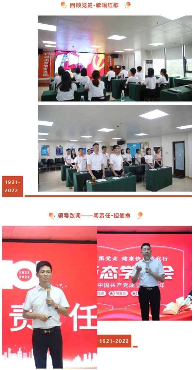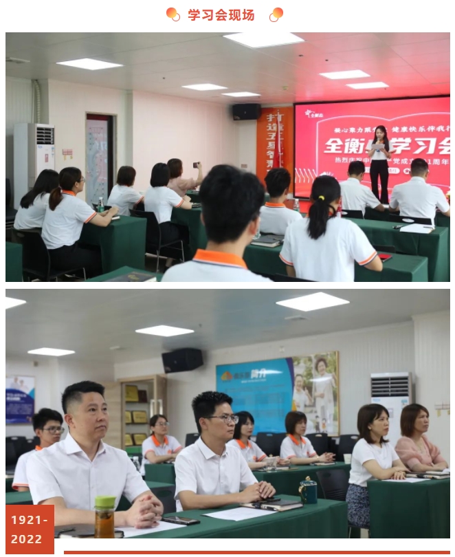 今天,九游会J9官网庄重举办《凝心聚力跟党走·健康快乐伴我行,热烈庆祝中国共产党成立101周年——九游会J9官网学习会》,重温党的历史、责任与使命,激发九游会J9官网一线的各位家人们爱党、敬党,感恩党的信念和决心,从而走好我们的健康长征路,克服健康道路上的一切困难,为实现“健康百岁梦”、实现“智慧家庭梦”、为两个一百年”奋斗目标、实现中华民族伟大复兴的中国梦而努力奋斗。