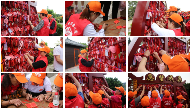 塔脚下设有心愿墙与姻缘树,从古至今许多官家百姓在莲花塔下虔诚许愿,祈祷国家风调雨顺、国泰民安;祈求家庭和睦、安居乐业。叔叔阿姨们听完介绍后,也纷纷在塔下虔诚祈祷,求得心想事成。