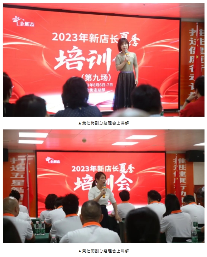 接下来,黄仕梅和黄仕丽副总经理分别向大家讲解了服务意识的基本规范、服务意识的重要性和概念性、如何提升服务意识等内容,通过理论讲解、案例分析、现场互动等方式,为新店长们上了一堂生动形象的课程。