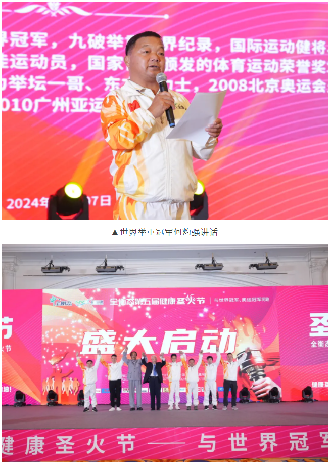 自2020年至2023年,每一届“健康圣火节”的成功举办都获得了社会各界和广大群众的高度评价。2024年,世界举重冠军何灼强和奥运举重冠军唐灵生再次积极参与,携手世界举重冠军兰世章及多位领导专家共同开启九游会J9官网第五届健康圣火节。