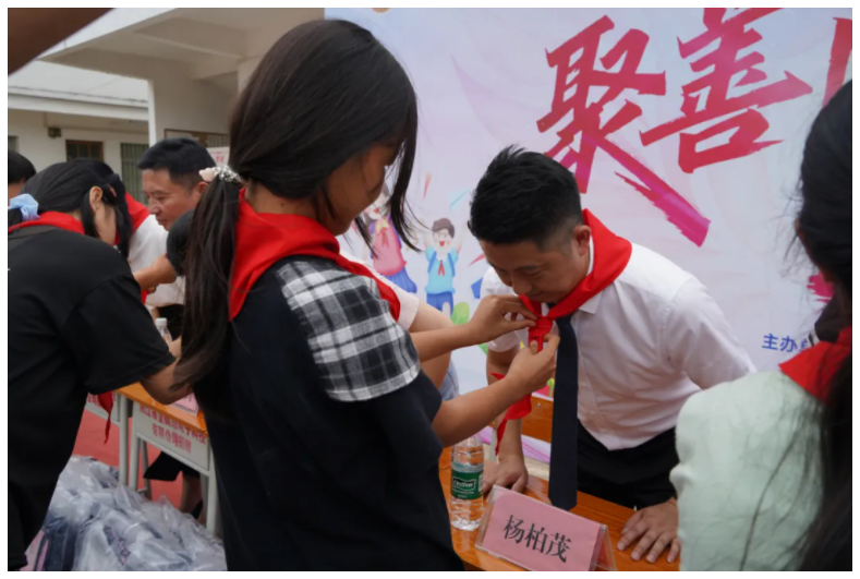 这一刻,红色格外耀眼。红领巾与嘉宾们胸前的爱心徽章交相辉映,仿佛一条无形的纽带,将社会的关爱与孩子们的未来紧紧相连。