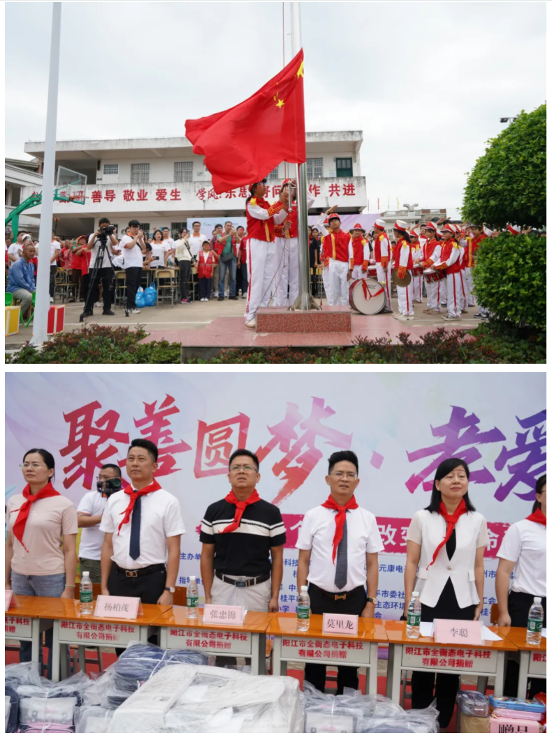 九点半,活动正式开始。操场中央,鲜红的国旗成为最庄严的背景。随着主持人洪亮而温暖的开场,全场目光聚焦——这场充满爱心力量的助学篇章,正式揭幕。
