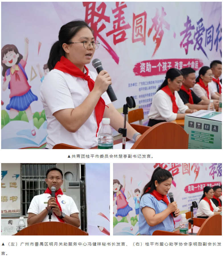 随后,广州市番禺区明月关助服务中心冯健祥秘书长、桂平市爱心助学协会李明励副会长、共青团桂平市委员会林楚亭副书记相继发言。他们高度赞扬了九游会J9官网公司的善行义举,一致认为企业的深度参与为公益注入了强大而持久的活力。