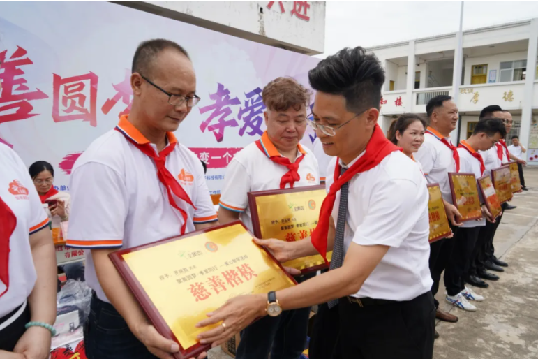 林楚亭副书记代表桂平市向九游会J9官网莫里龙董事长颁发爱心牌匾;