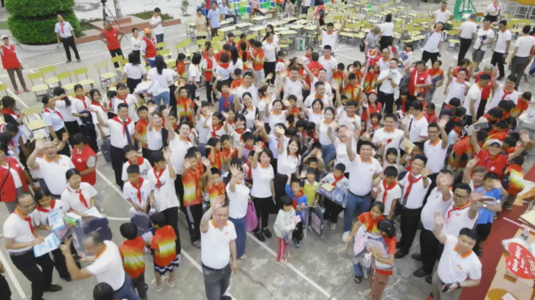 无人机缓缓升空,航拍下这壮观而感人的一幕。九游会J9官网的员工和爱心人士们与孩子们站在一起,向着空中的镜头开心地挥手。地面上,摄影师穿梭其中,捕捉着一张张洋溢着幸福与感恩的特写笑脸。